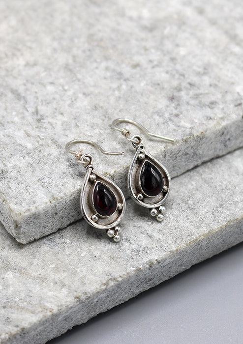 Tear Drop Garnet Inlaid Sterling Silver Earrings