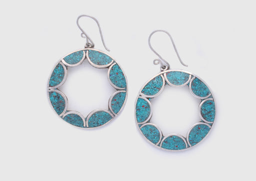 This earrings is finely hand carved in Nepal by our artist. The silver earrings is beautifully made and presented. The earrings is inlaid with turq...
