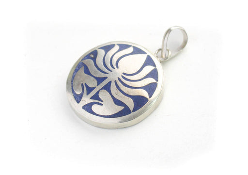 This is a beautiful faux Lapis and Turquoise inlaid round white metal pendant with silver plating. This pendant has high ritual sentiment and popul...