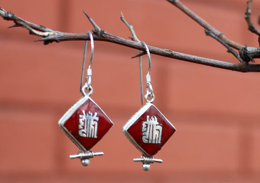 View full detailsWater Drop Shaped Tibetan Om Silver Earrings