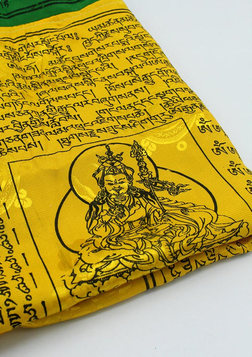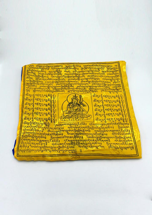 This is an exquisite vertical silk prayer flag also known in Tibetan as Darchor. This tibetan prayer flag is made of high quality export Silk which is designed to be attached to the poles along their vertical line. This would be a great spiritual outburst and also a great outdoor decor serving both the purpose of the prayer flag and the beauty.