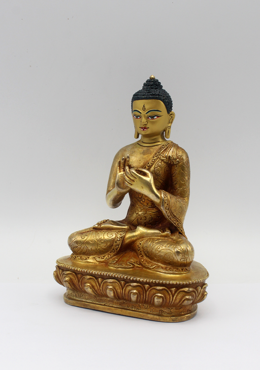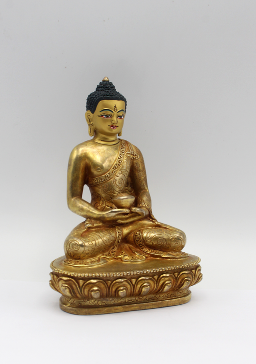 This is a fully gold plated Copper Statue of Amitabh Buddha sitting on a lotus. The statue is highly decorated. Here Amitabh Buddha is seated in a ...