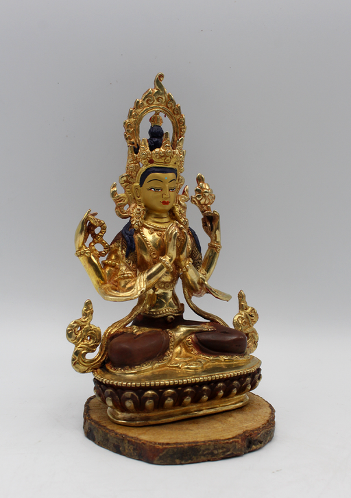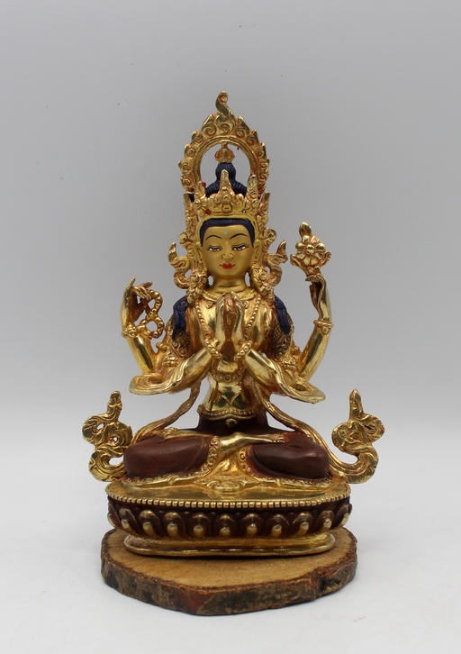 The Gold Plated Chenrezig Buddha Statue is a resplendent representation of Avalokiteshvara, also known as Chenrezig, the Bodhisattva of Compassion....