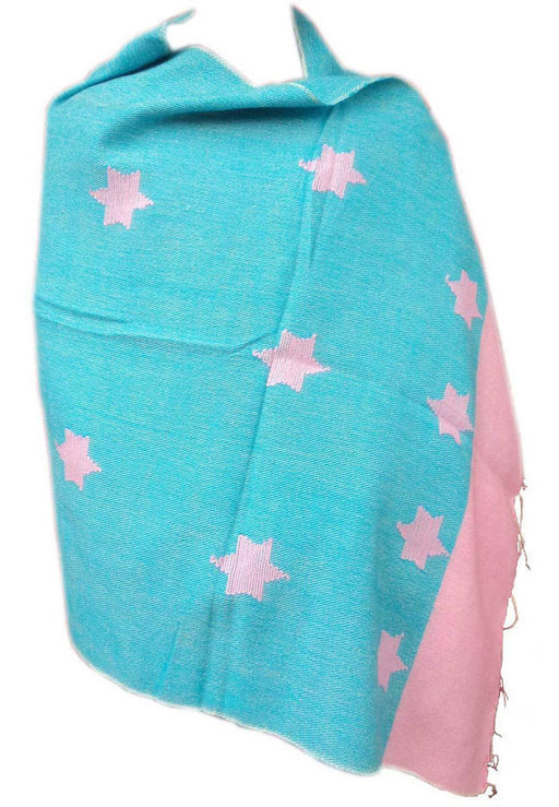 View full detailsBlue Pink Hand-Loomed Star Pattern Yak Wool Shawl Nepal