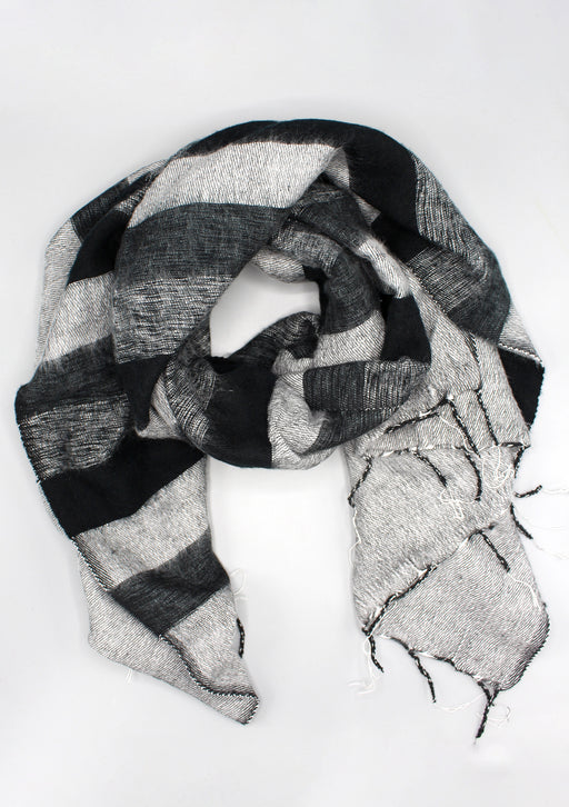 This is a beautifully hand weaved Yak Wool shawl from Nepal. The shawl is in Black and Grey stripe. This shawl is soft and luxurious to touch and w...