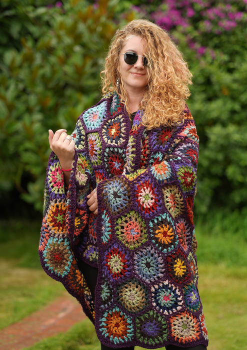 The blanket is designed in a hexagon pattern with Purple edges and Yellow, Blue and Red flower. This blanket is easy to carry and perfect to wrap yourself and protect from chilled winter. You can simply place it over the floor and sit on it or carry during long flights to wrap yourself as a blanket. This hand crochet blanket is fashionable too. This is a multipurpose blanket one must have for every seasons.