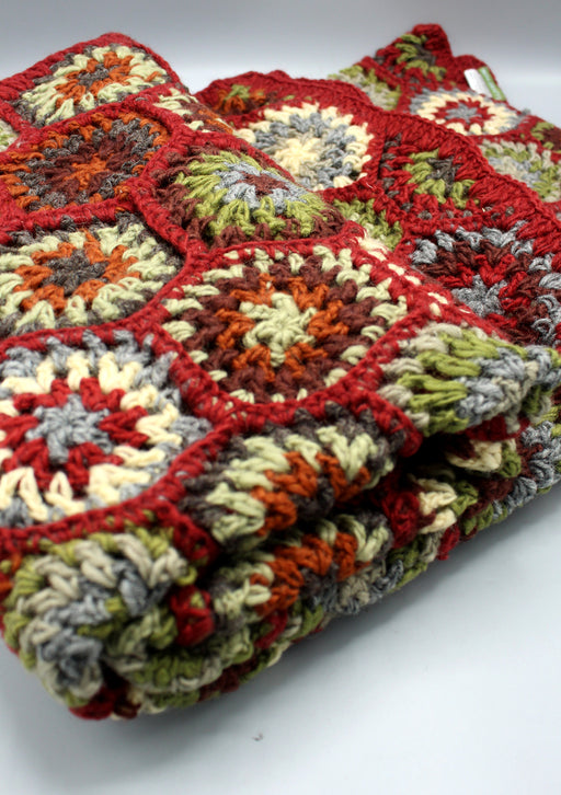 Beautifully Hand Crocheted Red and Gray Multi Color Woolen Blanket