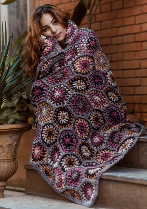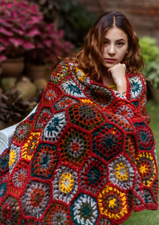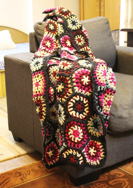 View full detailsColorful Hexagon Motif Pattern Hand Crochet Woolen Blanket/Throw