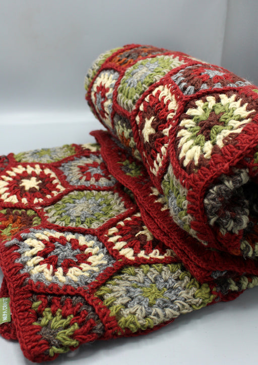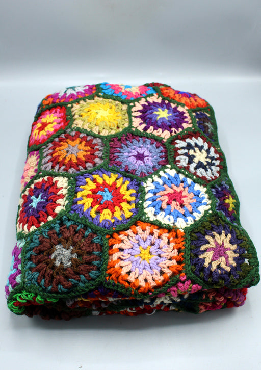This is a gorgeous multi color hand crochet woolen blanket from Nepal. The process of hand crochet requires technique and dedication and as a resul...