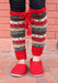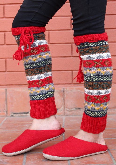 Bright Red Border Multicolor Woolen Legwarmers with Knitted Lace