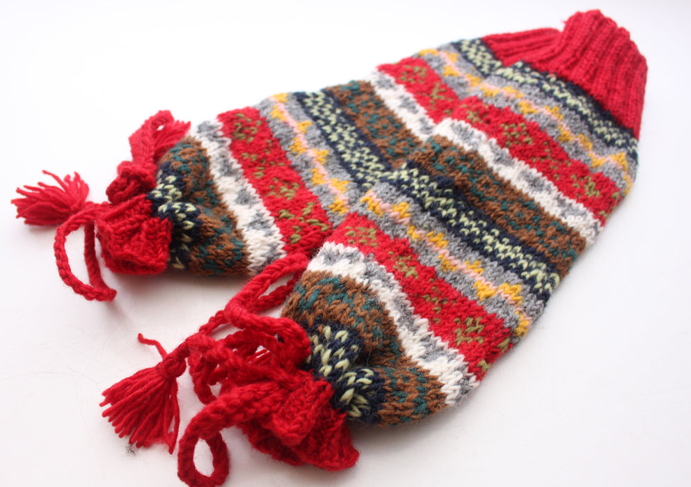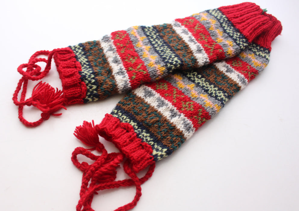These Woolen Leg warmer are hand knitted in Nepal. The Legwarmer has given a beautiful pattern using Red border and multiple colors i.e. White, Gray, Green, Yellow and Black. This is a best gift for Christmas.