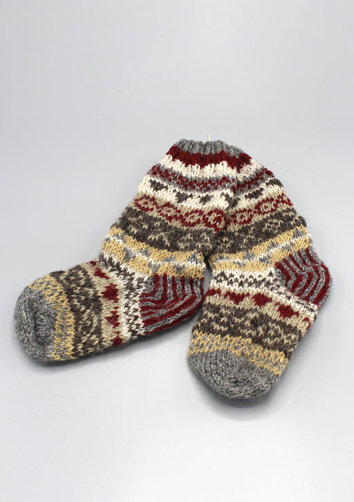 These pure wool knee-high socks are hand-knitted by Nepalese women artisans using soft sheep wool sourced from New Zealand. Warm, comfortable, and ...
