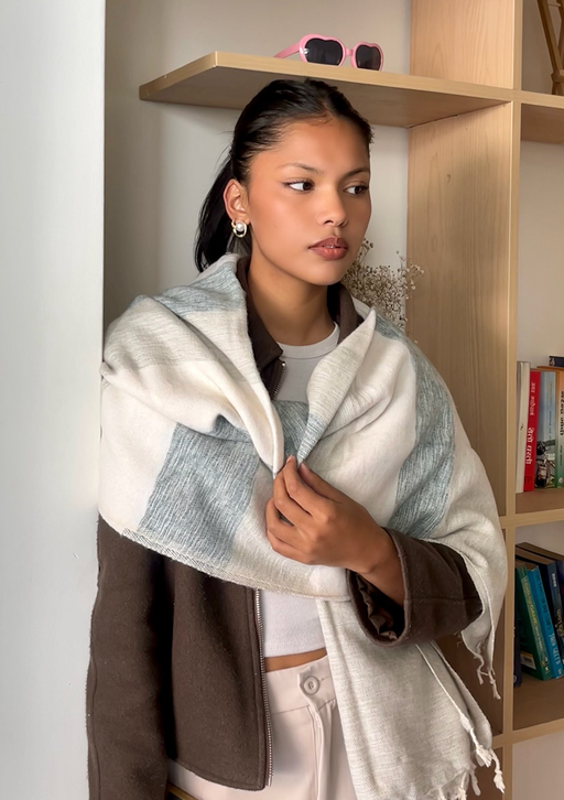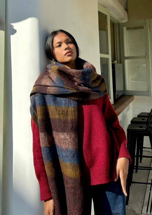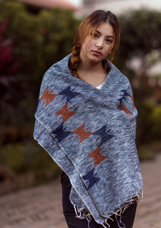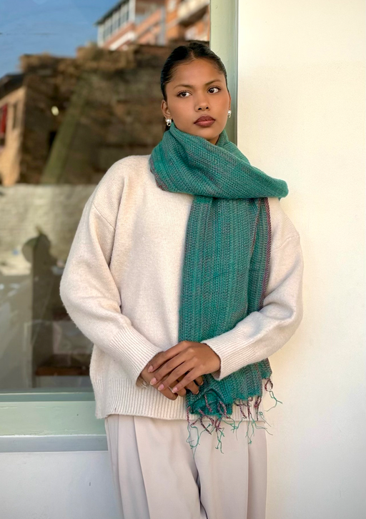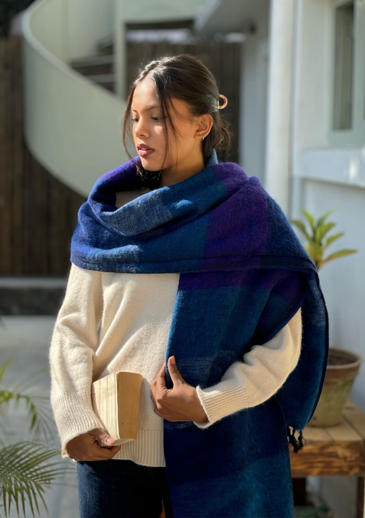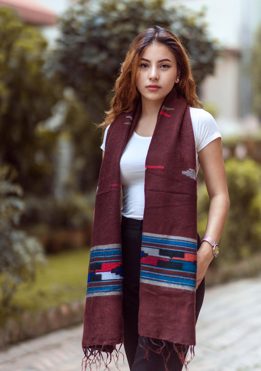 This luxurious woolen shawl, handwoven in Nepal, brings warmth, softness, and subtle elegance to your winter attire. Its fine wool fibers trap heat...