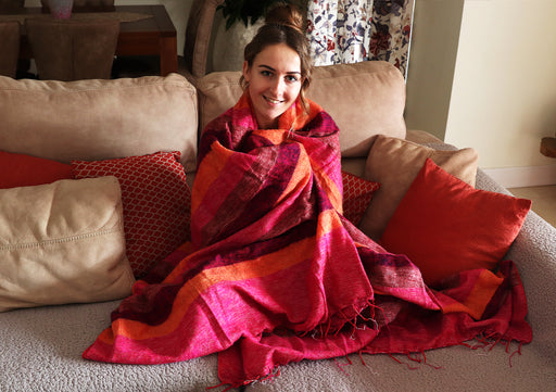 View full detailsPink Orange Mix Hand-loomed Soft Yak Wool Blanket