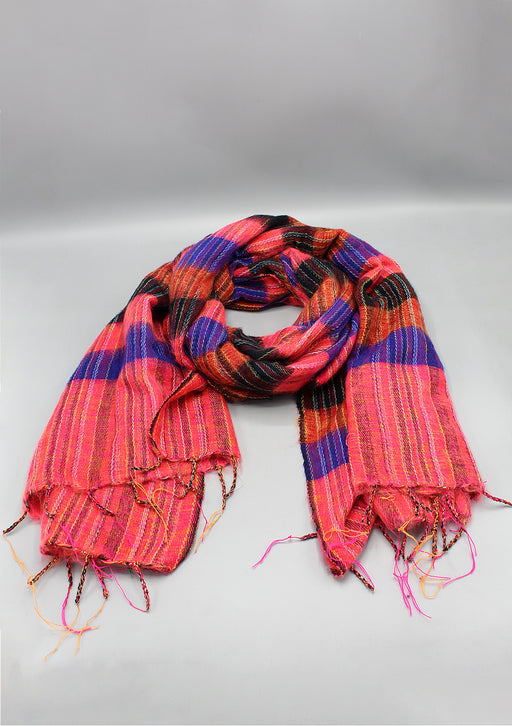 View full detailsBright Pink Mixed Color Lining Himalayan Yak Wool Shawl