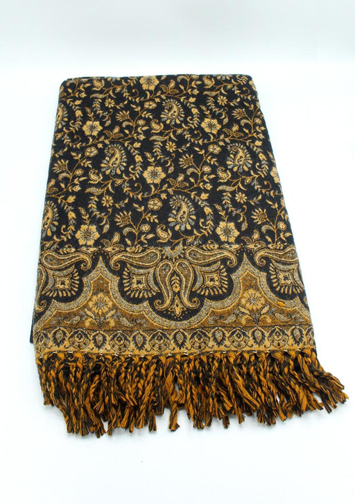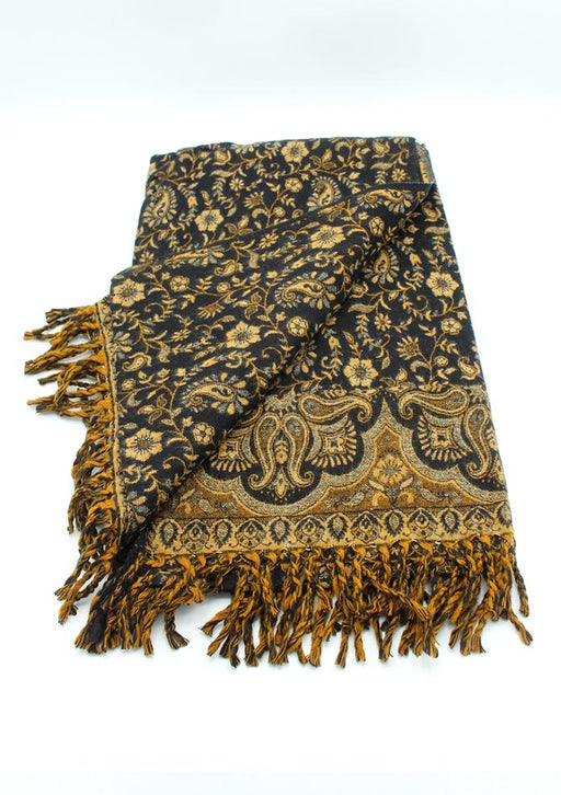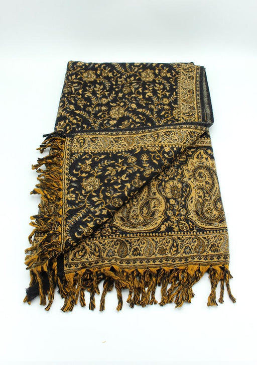 View full detailsHand Loomed Black Floral Pattern Print Yak Wool Shawl