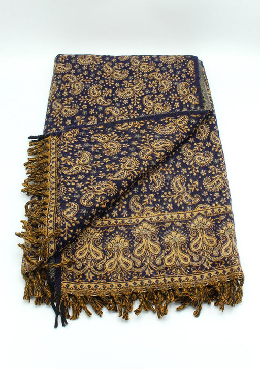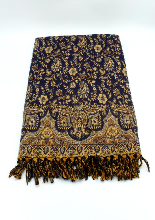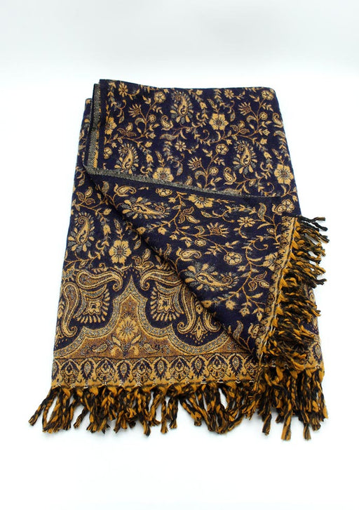 View full detailsHand Loomed Dark Blue Flower Pattern Print Yak Wool Shawl