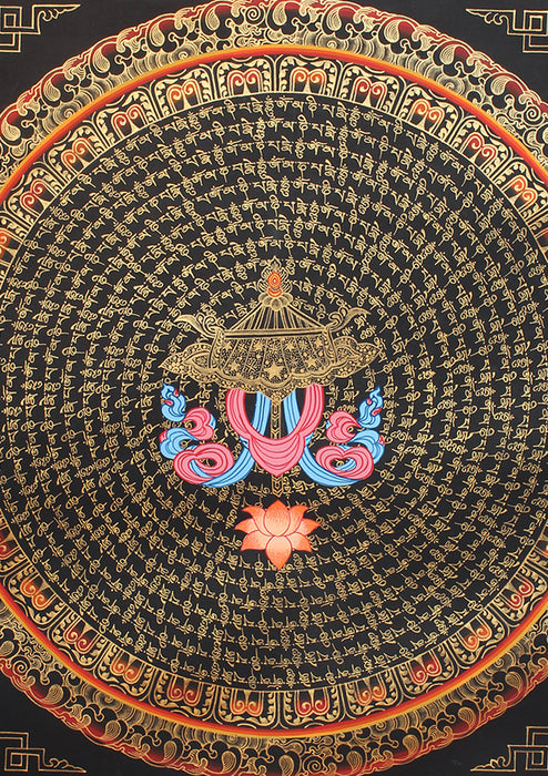 13 Line Mantras Mandala Parasol Painted Tibetan Thangka