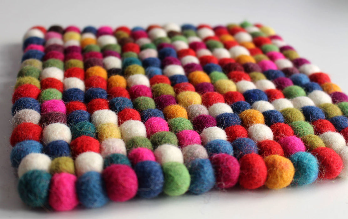 Ordinarily, it is used as cushion to put your plates, vase, decorative items, statues or any other items. This handmade Felt Ball Place Mat is handmade/hand felted by the local Nepalese women in the Kathmandu valley. The vibrant color and the round design gives it an edge and is all natural.