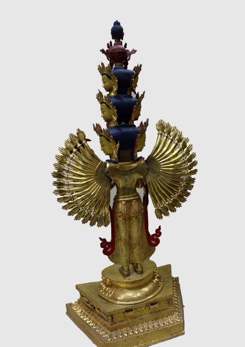 50" High Magnificent Thousand Armed Avalokiteshvara Gold Plated Statue