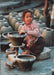 A photo of a pottress is taken in Bhaktapur, Nepal.