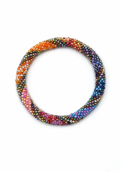 These fairly traded glass beads bracelet are meticulously crocheted by our women artists. Our woman artist carefully hand-strung these Roll On bracelet to give them the best shape and design.
