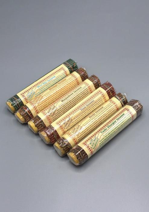 The ancient art of making incense is the traditional masala method in which natural resins, flowers, spices, aromatic and medicinal herbs are blended. This Tibetan incense revived this tradition with its exclusive ingredients Amber and other genuine Himalayan herbs.