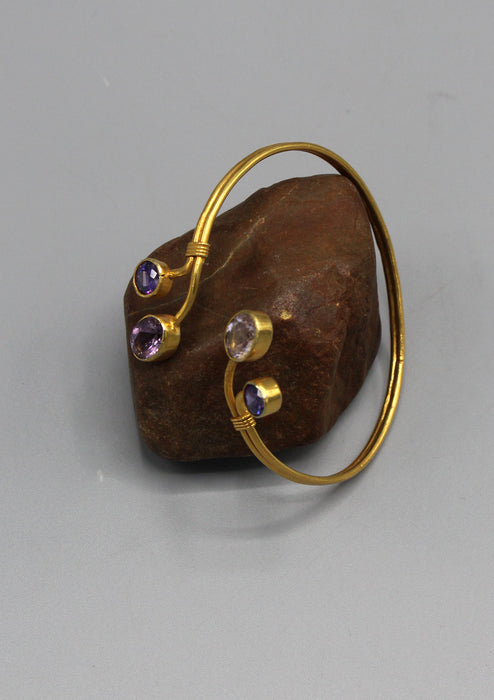 Amethyst and Sapphire inlaid Gold Plated Bracelet