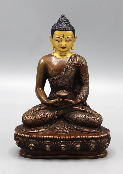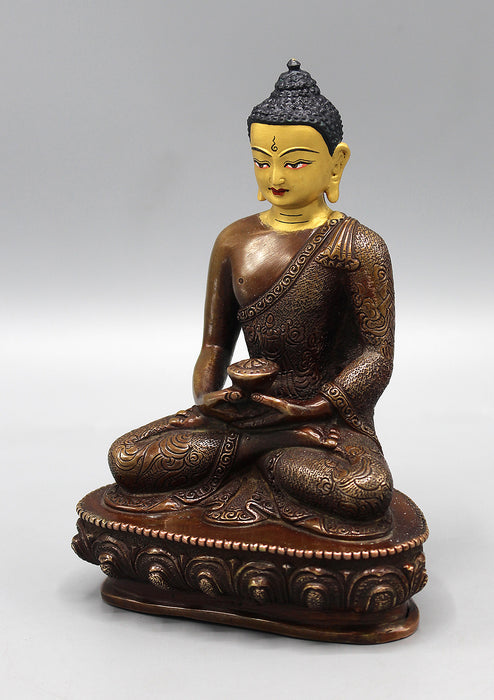 Amitabha Buddha Copper Oxidized Statue with Golden Face