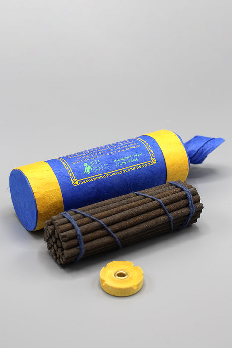 This Nagchampa incense is handmade in Nepal. This Incense formula is a traditional Tibetan medication that has been used for centuries. It is effective, non-toxic, non-addictive and made of 31 purely natural herbal ingredients prepared entirely by hand according to ancient Tibetan medical practices.