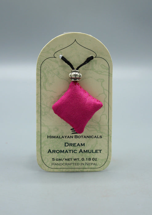 Himalayan Dream Aromatic Amulet contains herbs which are warm, soothing scents designed to enhance awareness and sensitivity, sharpen the memory, strengthen the body's inner fire while calming the nerves, fuel the mind and stimulate clairvoyance in dreams.