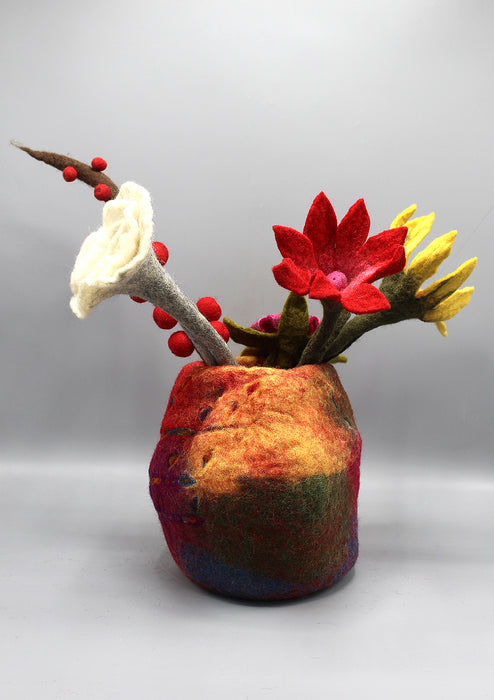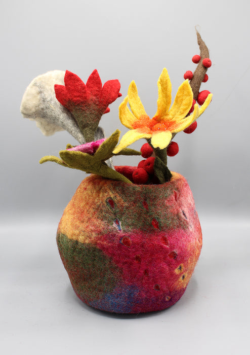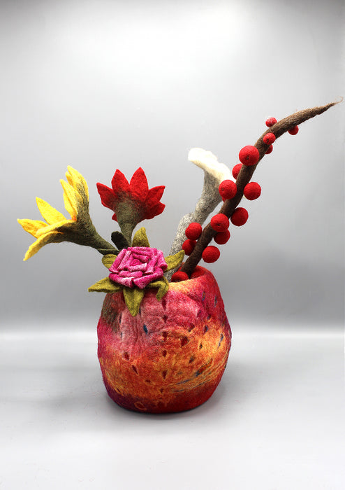 Beautiful Bright Pink, Red Mixed color Felt Flower Vase
