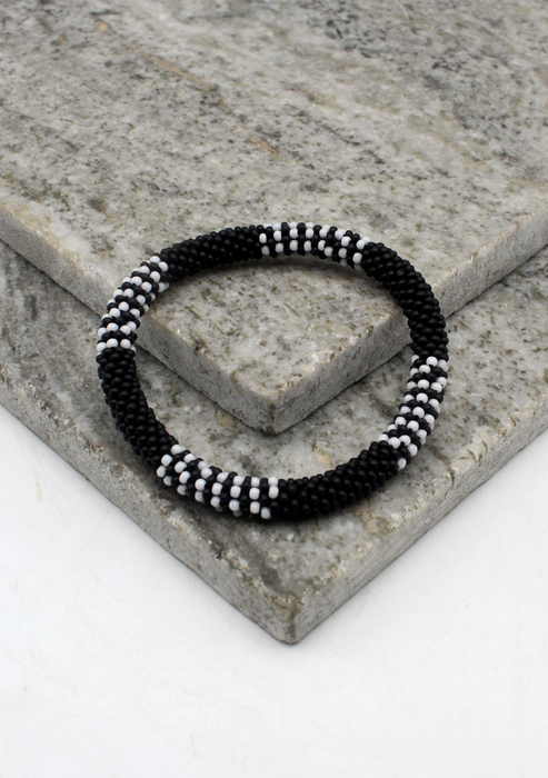 Black and White Beads Nepalese Roll On Bracelet has been meticulously crocheted by our women artists. Our women artists have carefully hand-strung this fairly traded Roll On bracelet.