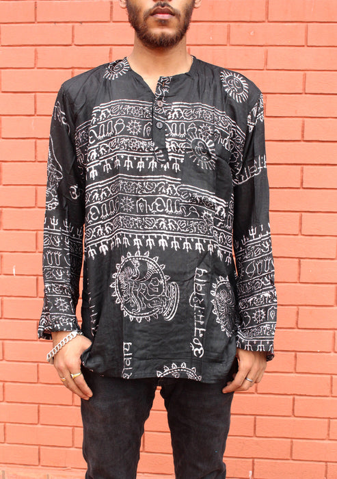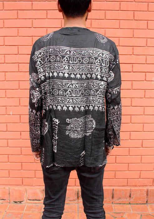 Black Cotton Om Prayer Shirt, Yoga shirt