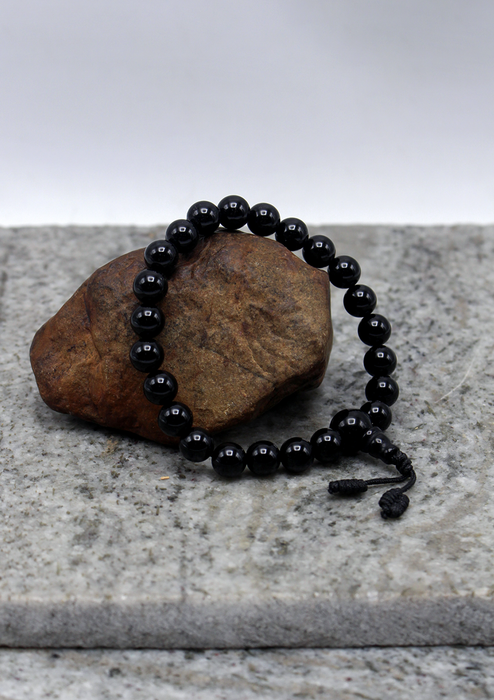 This bracelet is made with polished black onyx beads, cherished for their grounding and protective qualities. The deep, glossy black lends a timeless elegance, making it more than just a piece of jewelry-it's a companion for calm and confidence.