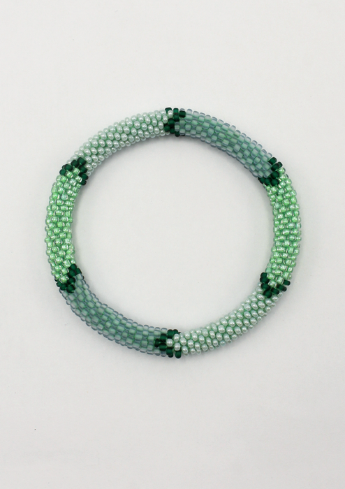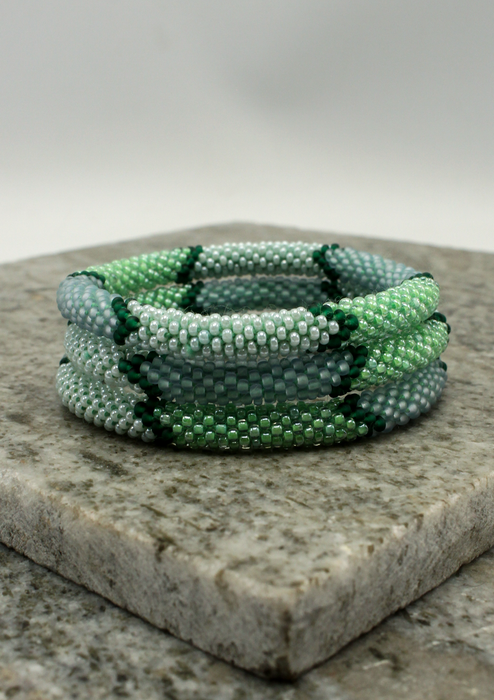 These fairly traded glass beads bracelet are meticulously crocheted by our women artists. Our woman artist carefully hand-strung these Roll On bracelet to give them the best shape and design.