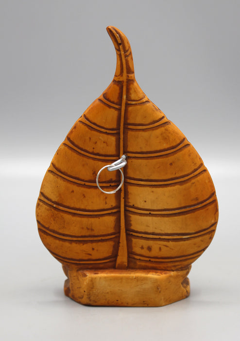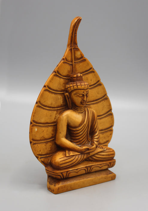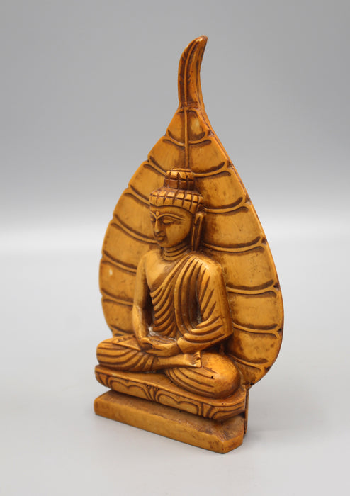 There is a bodhi leaf behind the Buddha and Bodhi leaf symbolizes the sacred place where the Buddha was enlightened.