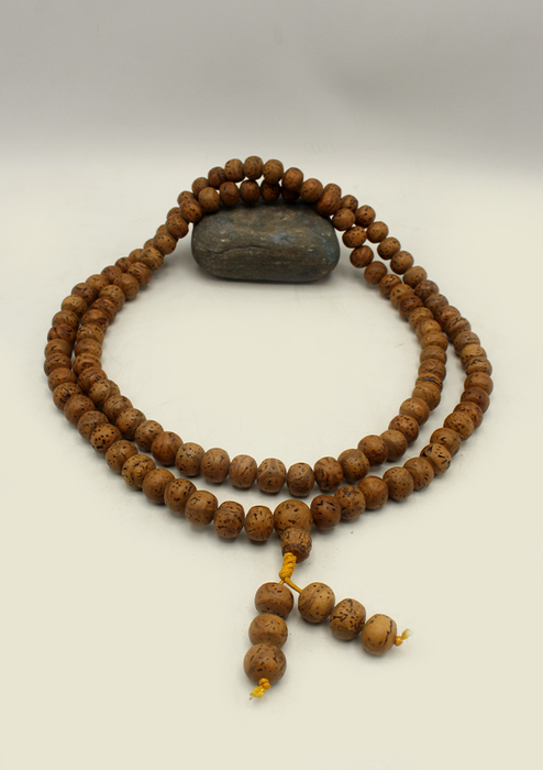 The mala contains 108 Bodhi seeds and can be used as japa mala, prayer mala, meditation mala or just as a beaded necklace.
