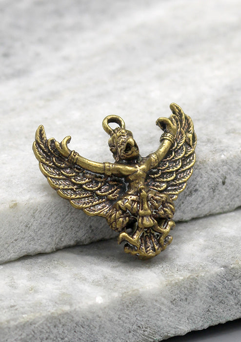 This is a beautifully hand carved Garuda Pendant. The pendant can be wear with any kind of chain of your choice. The Garuda is shown as eating an evil snake.