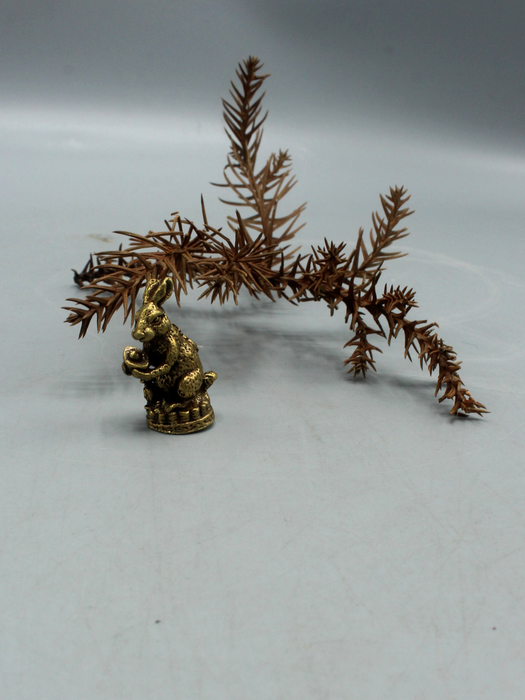 This is a rabbit mini statue made of brass. Rabbits are also a symbol of fertility, family and new life. This brass rabbit is so cute and small that you can placed at your table or any other desired place.