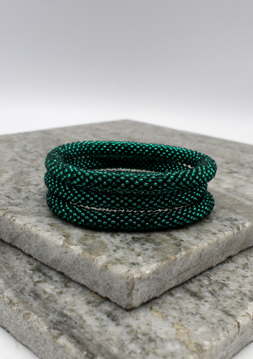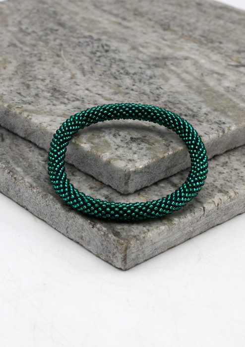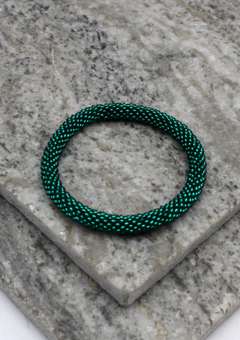 Bright Green Nepalese Roll On Bracelet has been meticulously crocheted by our women artists. Our women artists have carefully hand-strung this fairly traded Roll On bracelet.