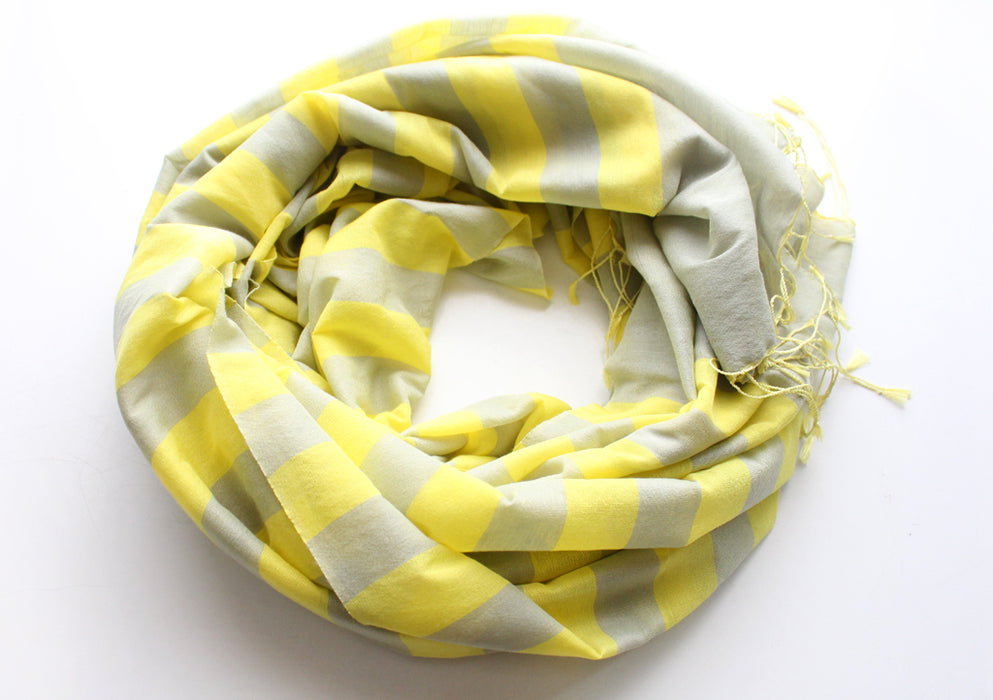 Bright Yellow Striped Gray Water Pashmina Shawl