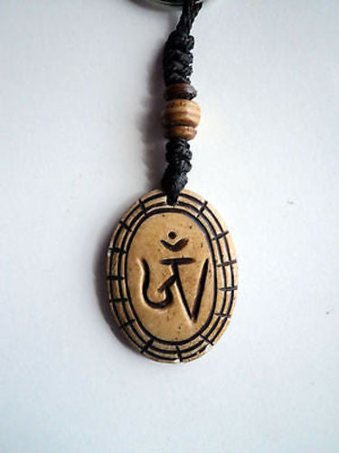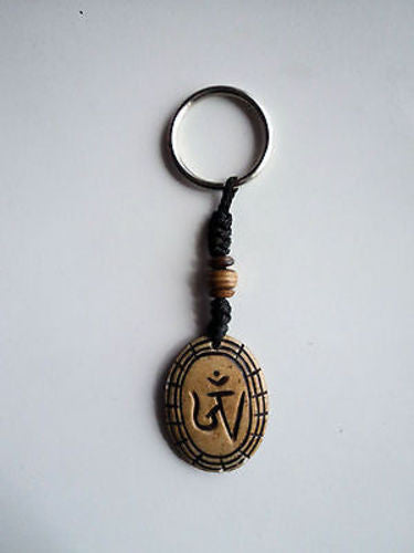 This is simply a very beautiful Tibetan Om keychain. The pendant is made of water buffalo bone.It is finely carved and well painted or shined. This keychain is attached to a durable nylon thread and would last a long time.