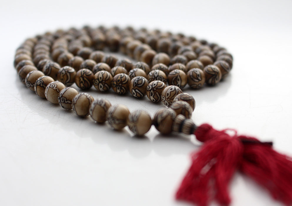 Buddha Eyes Carved Conch Shell 108 Beads Prayer Mala