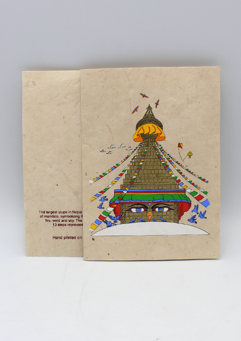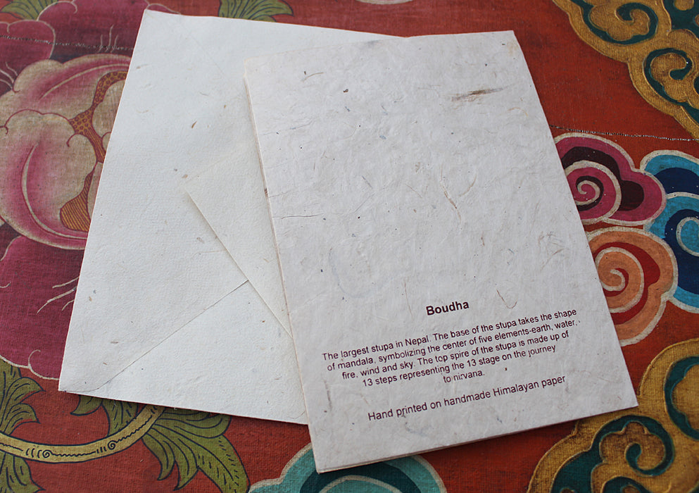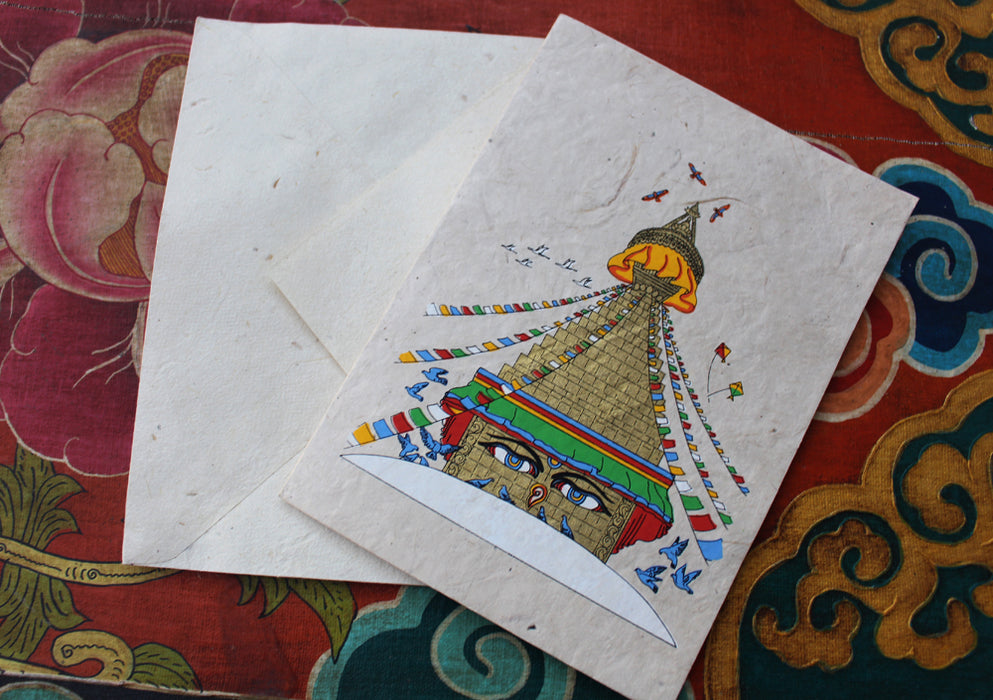 Buddha Stupa Painted Handmade Nepalese Lokta Paper Greeting Card