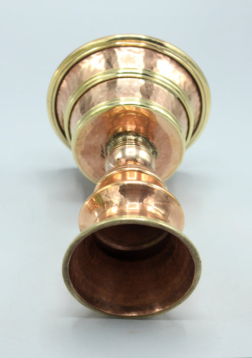 This is a traditional butter lamp used as a ritual item in Buddhist monasteries. Yak butter or Ghee is use traditionally use to lit up the lamp. Butter lamps are believed to help focus the mind and aid meditation.