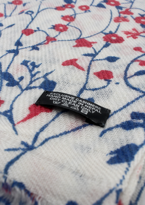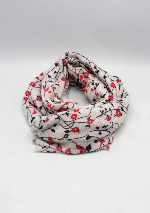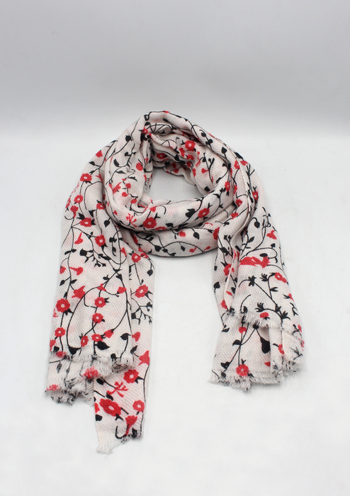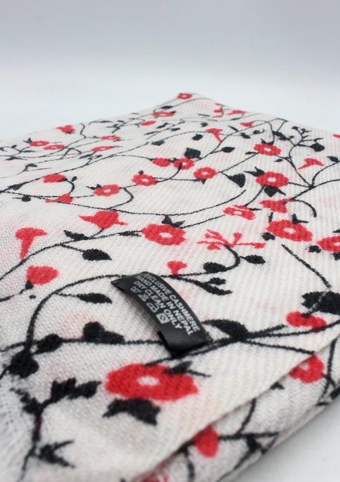 This exquisite Cashmere Red Floral Print Shawl embodies luxurious softness and elegance. Crafted from Cashmere yarn, it is meticulously hand-dyed and loomed using traditional techniques in Nepal. The utilization of cashmere guarantees superior warmth, a velvety texture, and a refined sense of style.