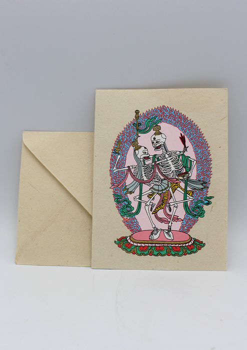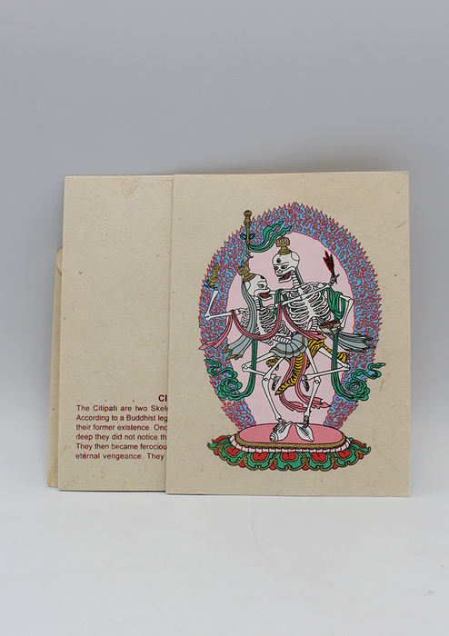 This is a beautiful and creatively painted Citipati in a recyclable Nepalese lokta paper greeting card with envelop.
