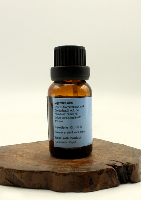 100% pure and natural Citronella Essential Oil from Nepal, perfect for use in aromatherapy, insect repellents, and cleaning products. This essential oil, known for its fresh, lemony scent, is free from synthetics, fragrances, fillers, or toxic chemicals. Each batch is GC/MS tested to ensure quality, safety, and effectiveness. Ethically and sustainably sourced, this oil is effective for repelling insects and refreshing your environment.