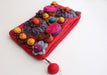 This is a beautifully hand felted Felt Clutch Purse which has multicolor flower sewn into a Red purse and this is handmade in Nepal. This purse is decorated with beautiful flowers and small colorful felt balls. The purse is very soft and very durable. It has a zipper closure to provide safety to your belongings.